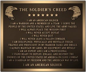 I am a Warrior and a member of a team. I serve the people of the United States and live the Army Values.