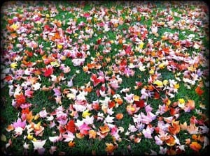Leaves in our front yard this morning. Mow, Rake, Shovel, Seed – the cycle of life!!
