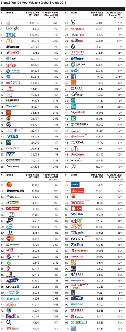 via BrandZ: Top 100 Most Valuable Brands 2011 | Digital Buzz Blog.